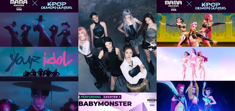 Netflix原創動畫《Kpop獵魔女團》在全球爆紅,創下3億觀看次數,片中的惡魔男團Saja Boys和獵魔女團HUNTR/X也將躍上此次MAMA頒獎典禮舞台,據悉將和YG女團BABYMONSTER一起帶來一場充滿驚奇的大秀。究竟這三個團體會一起表演《獵魔女團》的熱門歌曲〈Soda Pop〉、〈Golden〉,或另出奇招,令所有粉絲都相當期待。