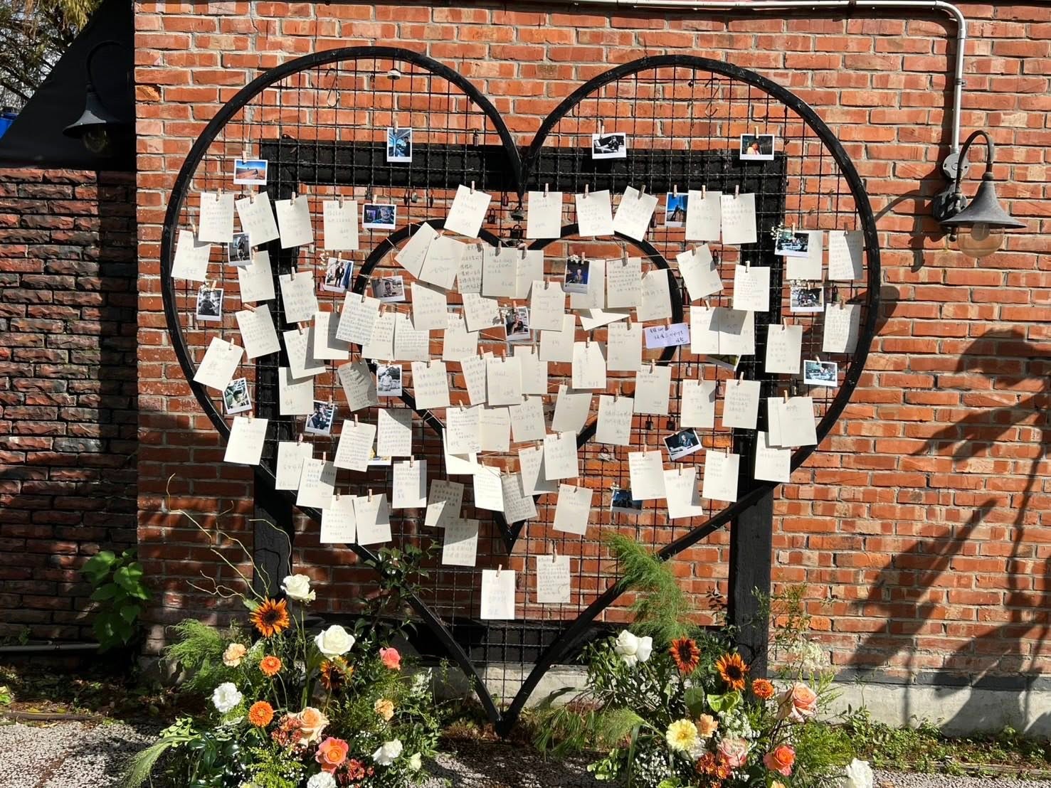屠穎追思會現場掛滿親友寫的字卡。翻攝孟庭葦臉書