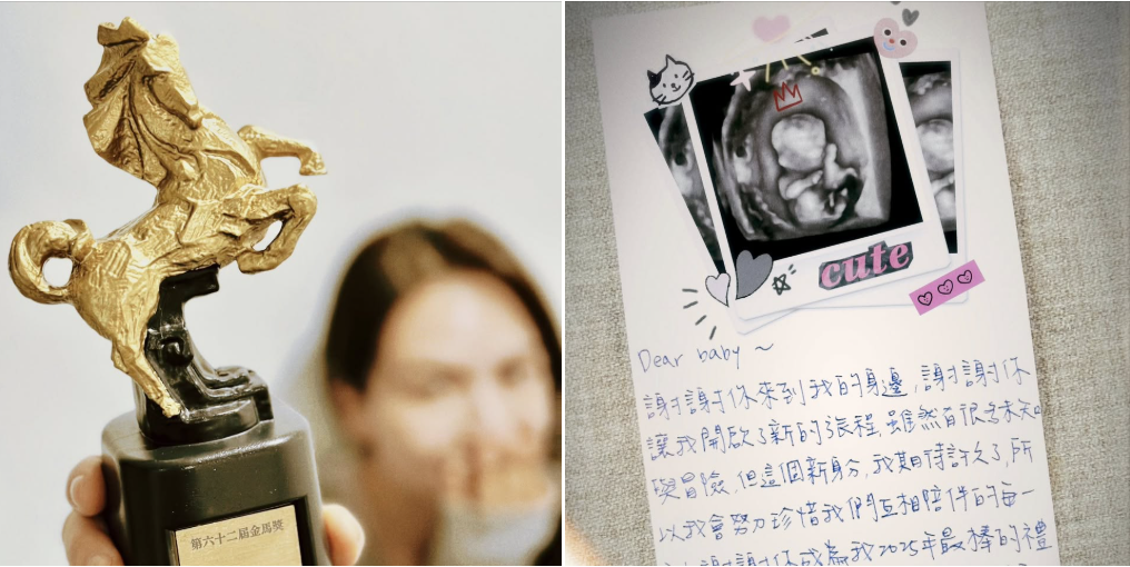 夏于喬17日在社群宣布懷孕好消息,照片中,她拿著印有「最佳準媽咪獎」的金馬獎座對肚中胎兒說:「Dear baby❤️謝謝你來到我的身邊,謝謝你讓我開啟了新的旅程,雖然有很多未知與冒險,但這個新身分,我期待許久了」,也強調「現在開始,心跳聲有了兩種節奏,一個是我,一個是要用餘生守護的你。」
