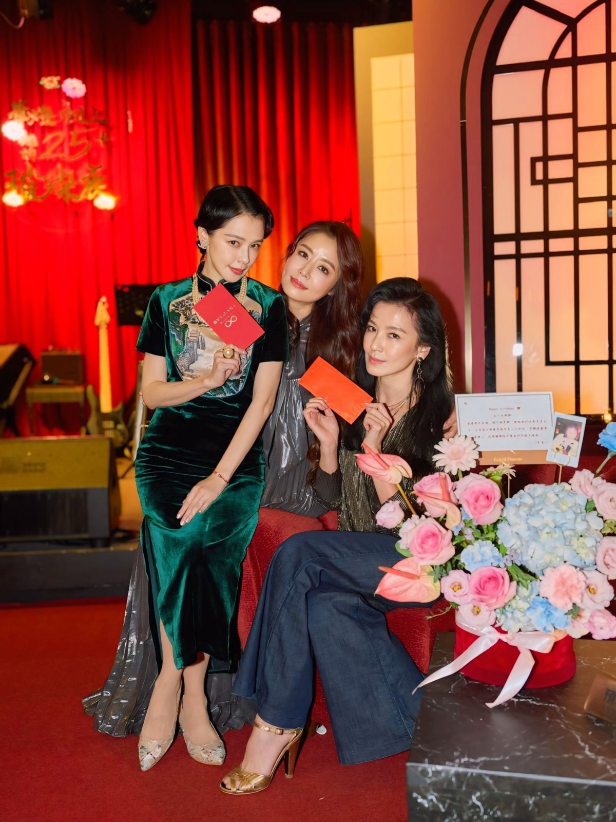 徐若瑄(左)穿旗袍、林熙蕾(右)頂半屏山髮型為林心如慶生。翻攝林心如臉書