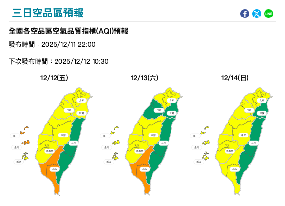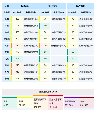12/12-12/14三日空品區預報。環境部提供