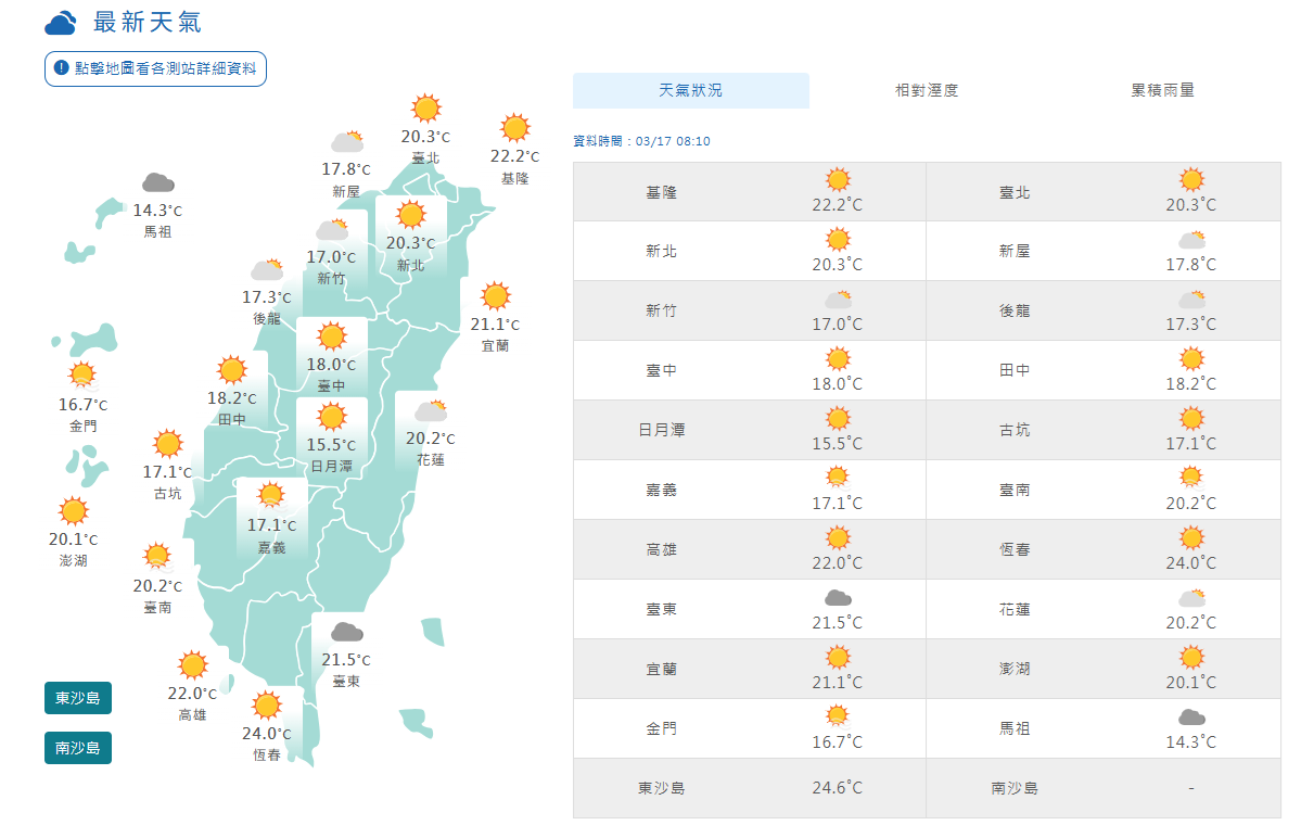 2026.03.17清晨各地天氣概況。氣象署提供