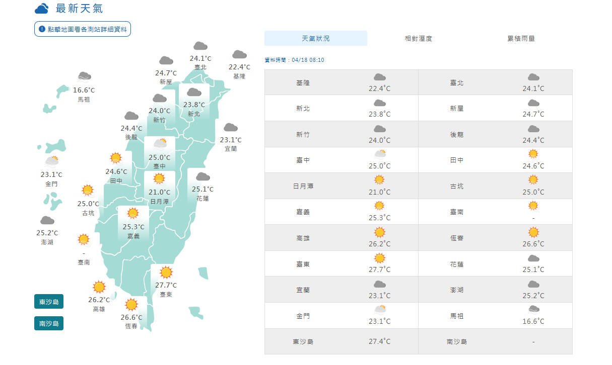 4/18天氣。取自氣象署