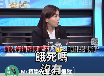 鍾沛君在政論節目中說,就算花蓮縣政府沒把便當發完導致發臭,也沒有災民因此餓死,引發爭議。翻攝臉書粉專「Mr.柯學先生」