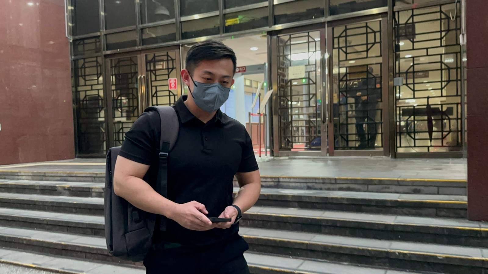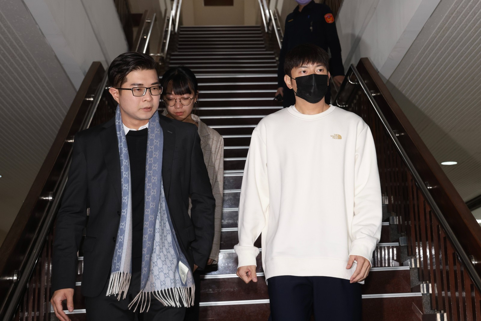 黃國昌捲入狗仔隊跟監案,今天淡定陪柯文哲出庭。廖瑞祥攝