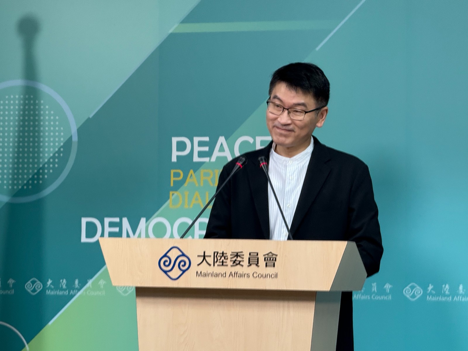 陸委會副主委、發言人梁文傑2025.10.2主持記者會。郭宏章攝