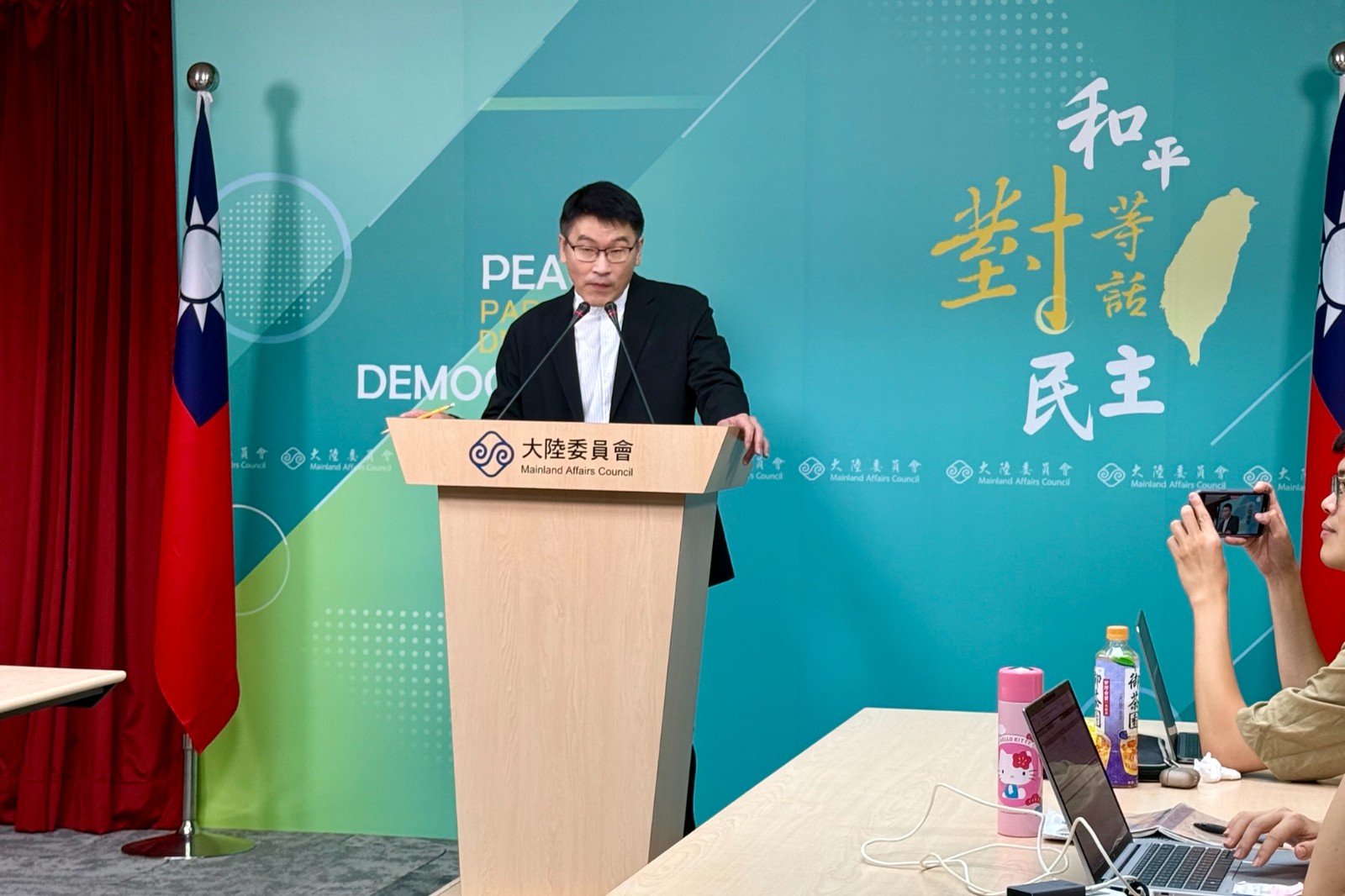 陸委會副主委、發言人梁文傑2025.10.2主持記者會。郭宏章攝