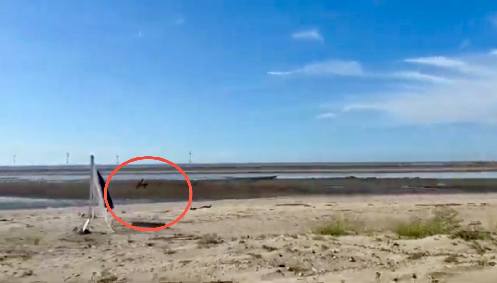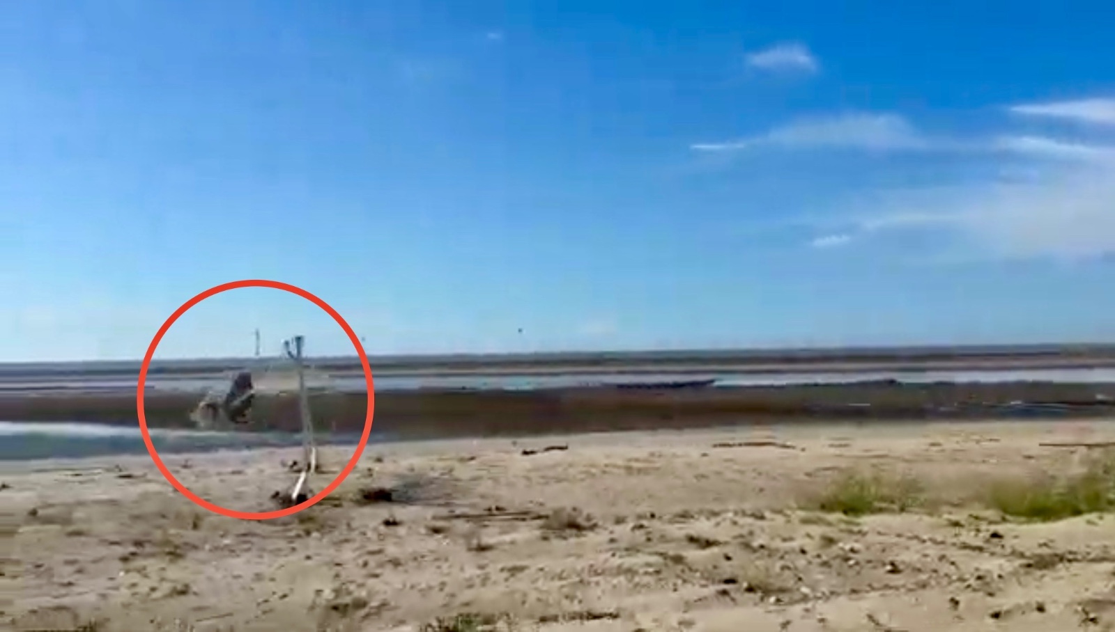 銘旺科技研製的戰術無人機被稱為「台版彈簧刀自殺攻擊無人機」,2025.10.1正式飛測成功,紅圈處為無人機衝向攔截網。截自銘旺科技飛測影片