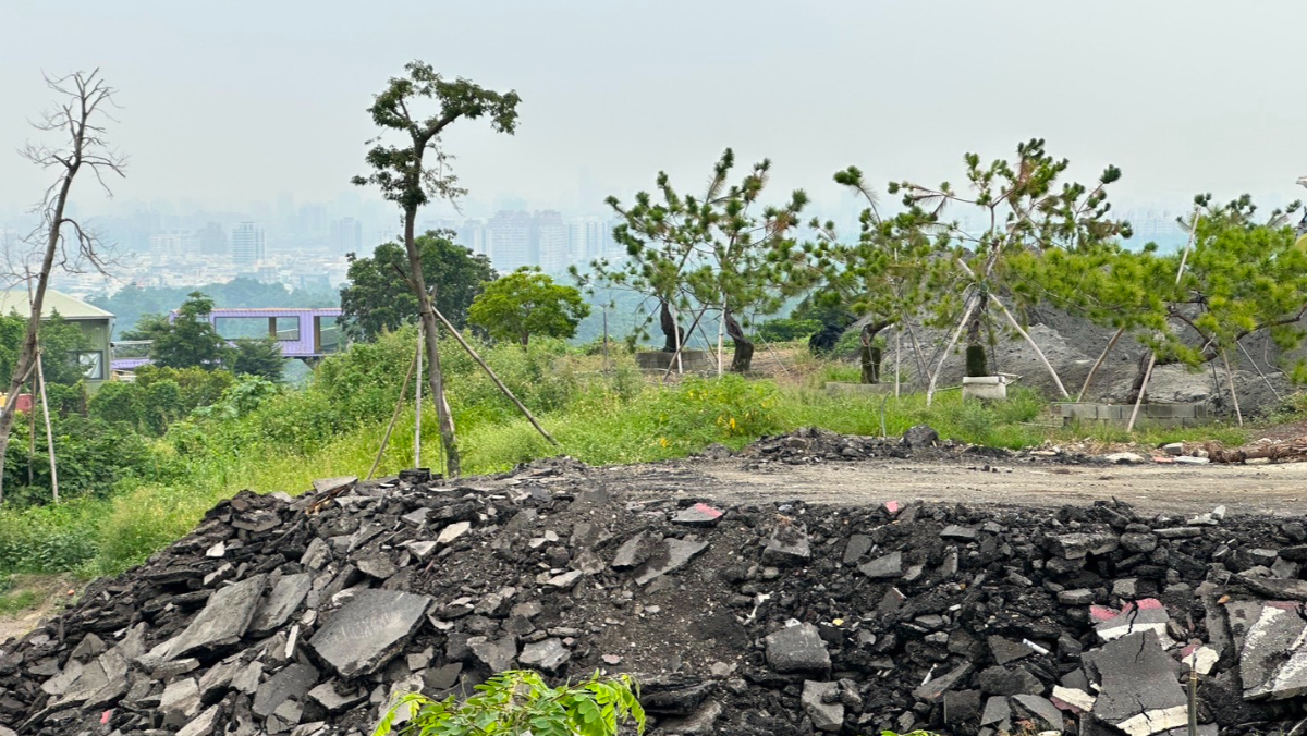 高雄大坪頂山坡地保護區疑遭違法開發,不只綠地全被挖空,更被推成柏油山。高市議員許采蓁提供
