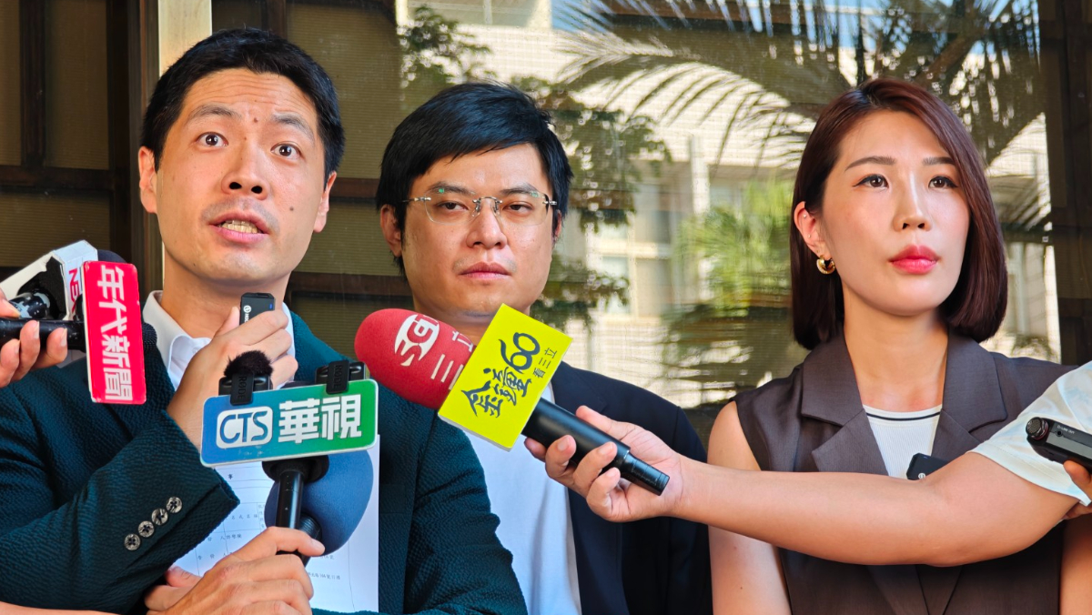 媒體人馬郁雯(圖右)與青年監督聯盟發起人陳又新(圖左)、執行長許譽騰(圖中),在今(10/14)日上午前往台北地檢署告發王鴻薇、張凱維2人涉貪。呂志明攝