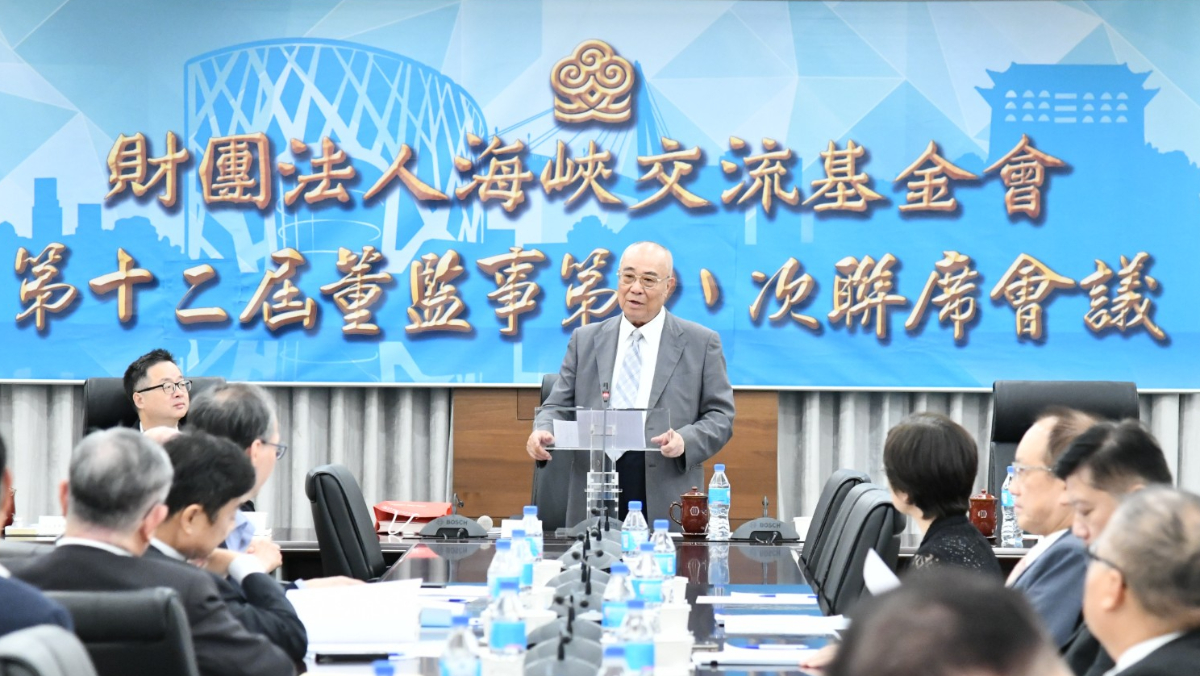 海基會今(10/14)日召開第12屆董監事會第8次聯席會議,董事長吳豊山致詞。海基會提供