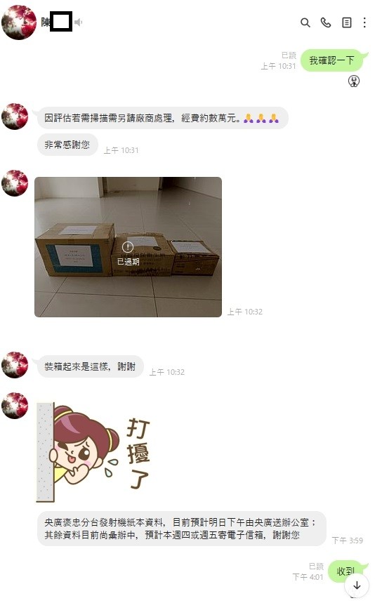 民眾黨立委黃國昌分享自己與央廣吳姓工程師的對話紀錄。黃國昌國會辦公室提供。