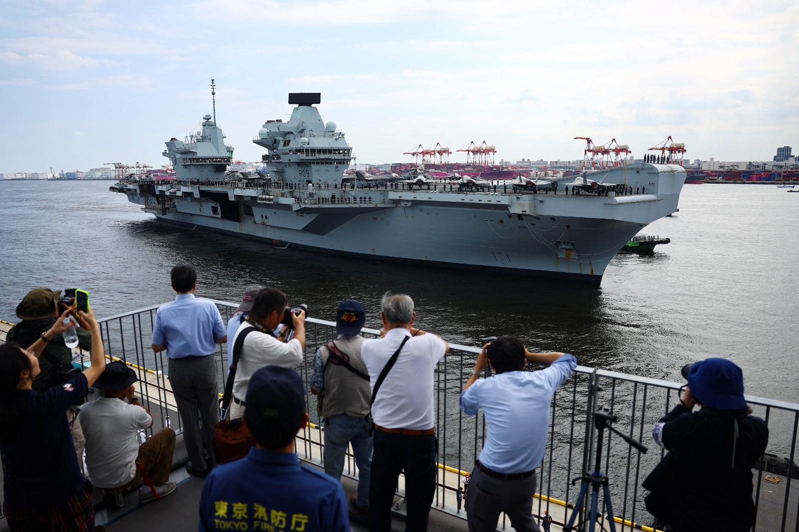 英國航空母艦威爾斯親王號8月28日進入東京港。路透社