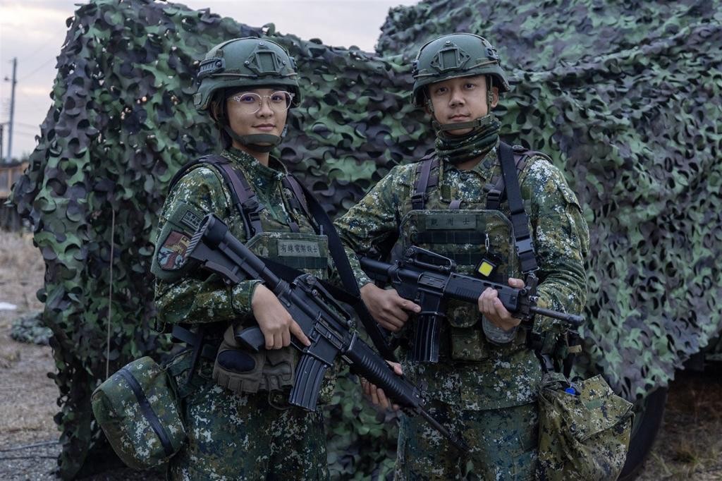 陸軍234旅砲兵營砲2連吳軒豪上士(右)、營部連林曉筠中士夫妻檔,聯手參與「陸勝一號」旅對抗演練。照片:青年日報記者林睿奕攝