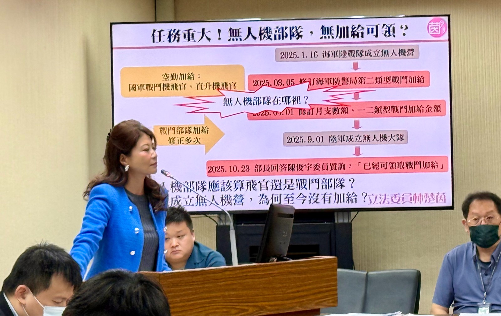 無人機部隊無戰鬥加給可領? 林楚茵:應盡速發放、不應拖超過一年