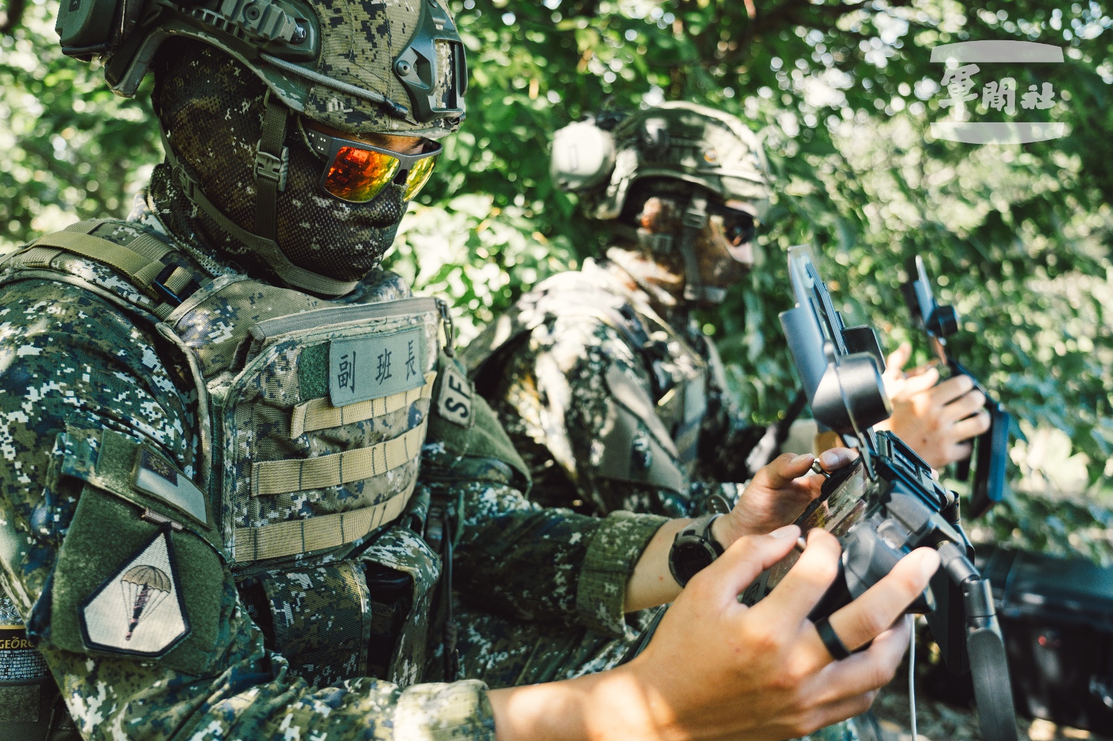 漢光41號演習縱深防禦,陸軍特戰官兵運用微型無人機實施空中偵察,掌握敵軍動向。國防部