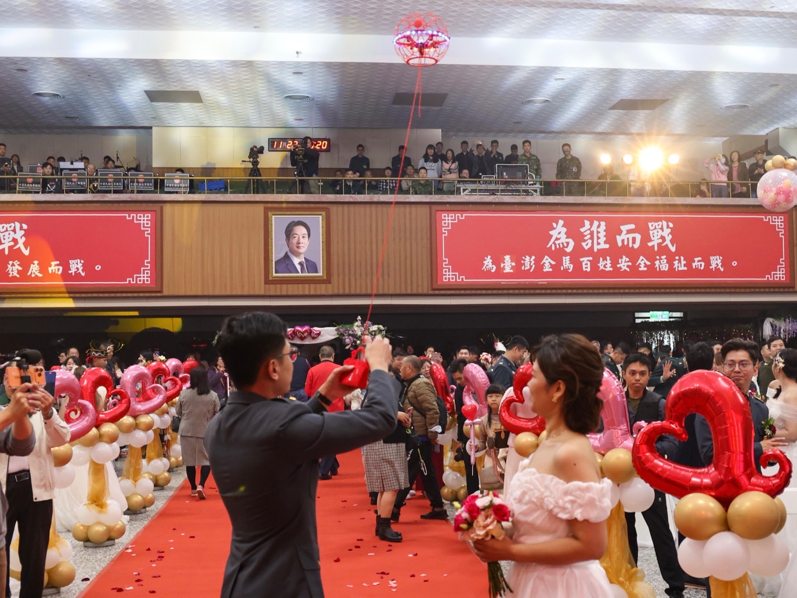 此外,本次聯合婚禮,除了延續過去安排官兵現場演場的傳統,更首次由新人伉儷擔任婚禮歌手。潘育賢中士與妻子吳家羽獻唱原創歌曲《我答應你》等活潑輕快的歌曲,帶領現場新人們和與會嘉賓一同隨著音樂起舞,讓典禮會場增添熱鬧氛圍,為婚禮活動揭開幸褔洋溢的序幕。