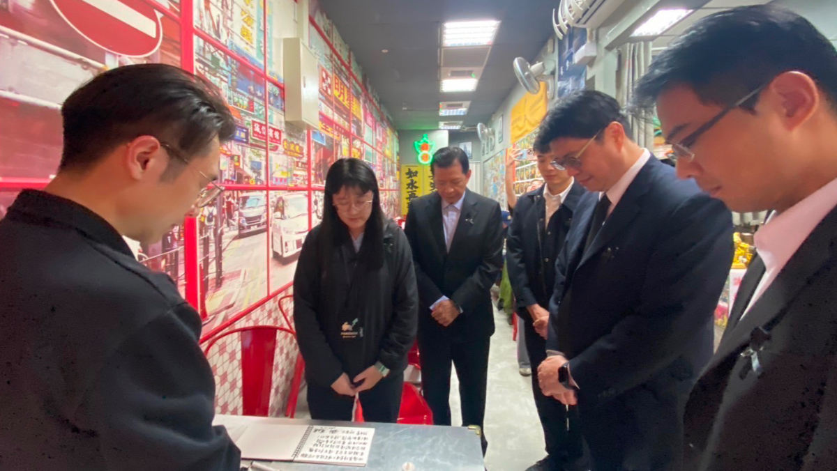 陸委會主委邱垂正親自前往在台港人開設的「九月茶餐廳」對於香港宏福苑大火表達哀悼之意。台港經濟文化合作策進會提供