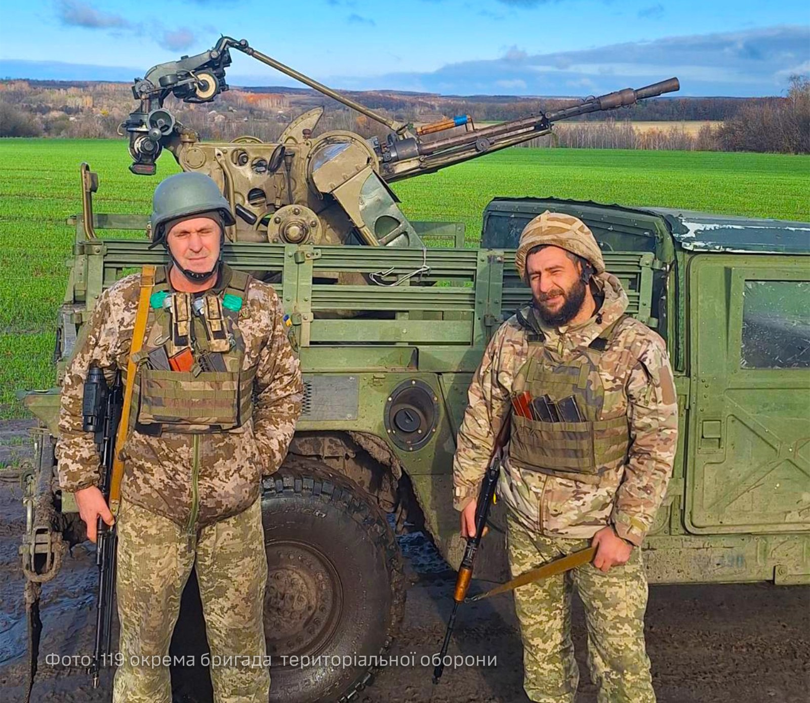 配備ZPU 14.5公厘口徑高射機槍的烏克蘭第119 國土防禦旅的悍馬車,擔負反制無人機的火力小組任務。烏克蘭國防部