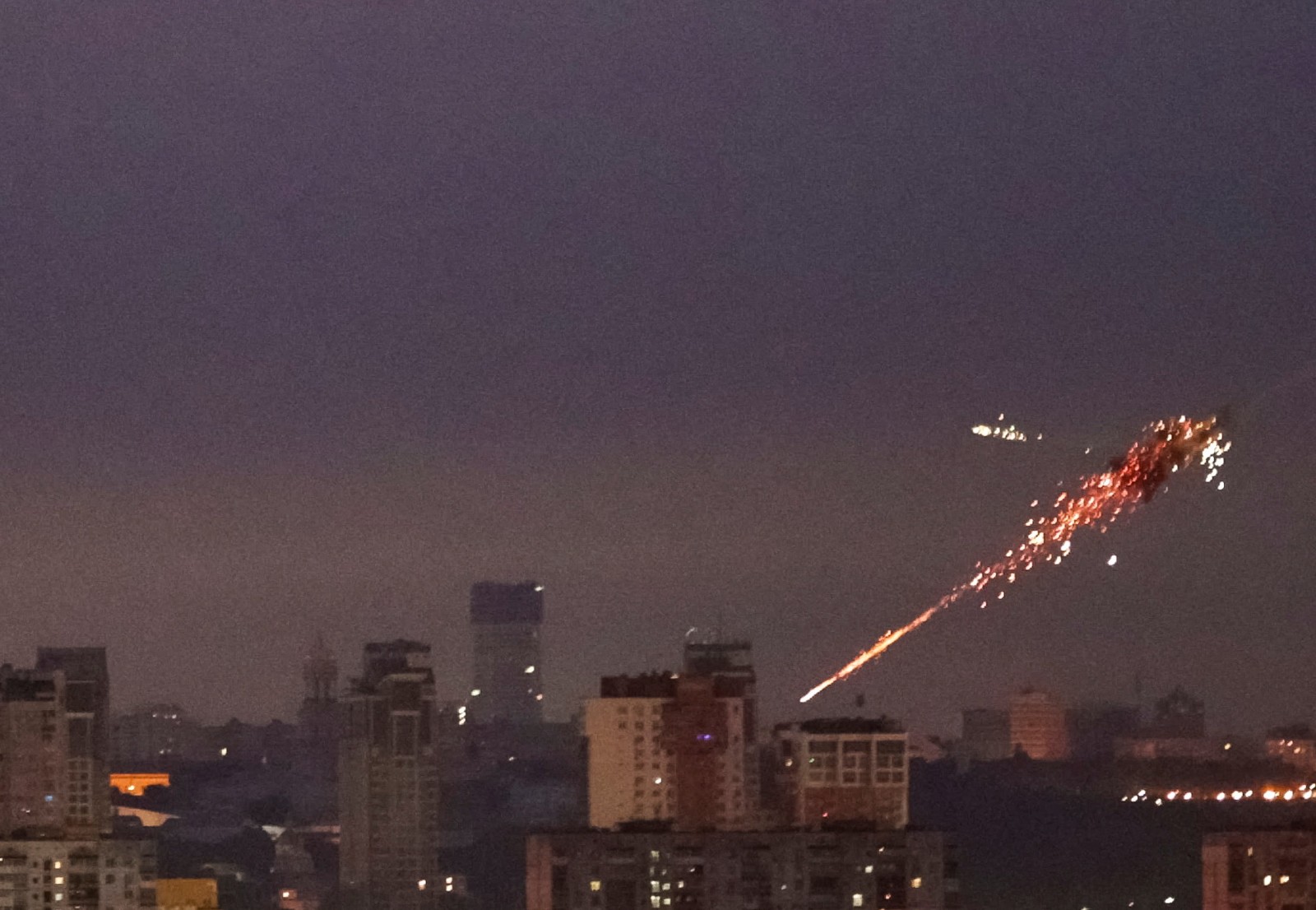 烏克蘭首都基輔9月28日清晨遭遇俄國大規模空襲,爆炸火光在城市中閃現。路透社