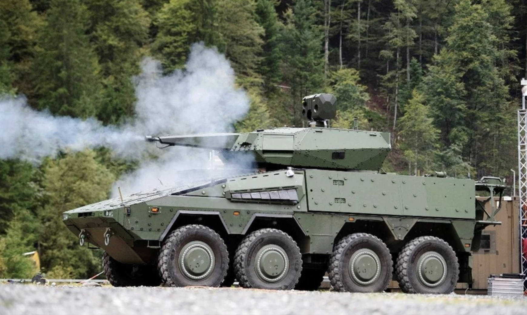 德國萊茵金屬公司(Rheinmetall AG)研製的「天空突擊兵30」(Skyranger 30,30公厘口徑快砲版本)反無人機(C-UAS)與短程防空系統,圖為德國陸軍2025年接收首輛「天空突擊兵30」。 Rheinmetall AG