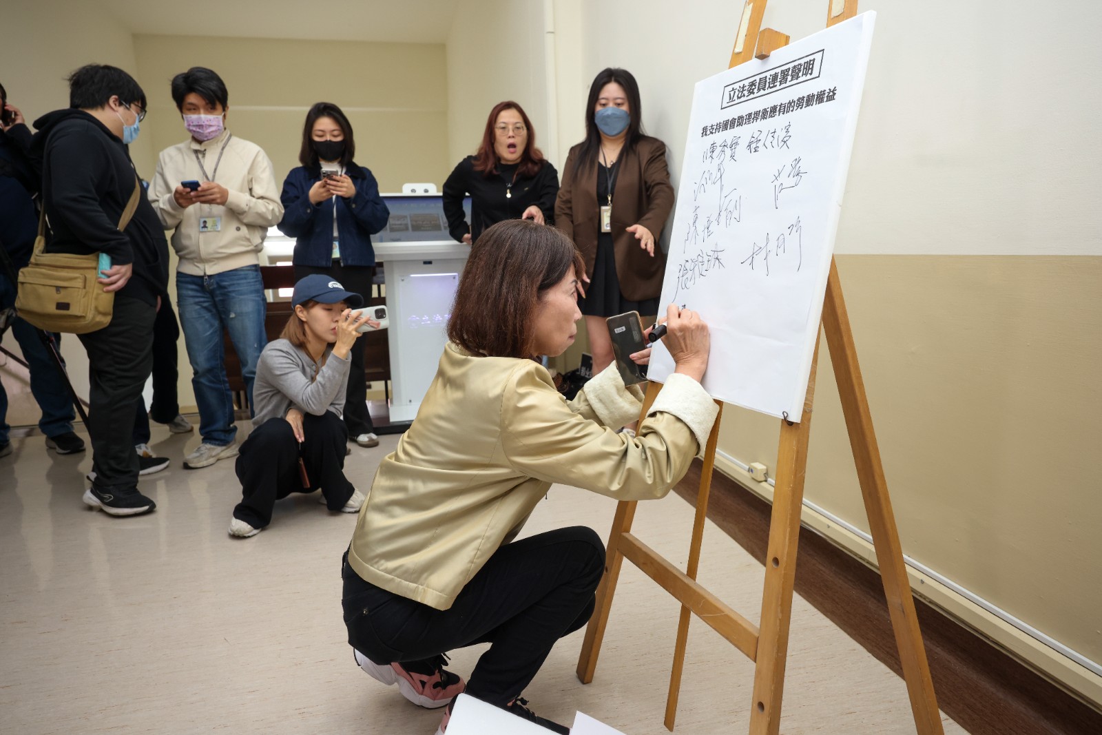 反對立委陳玉珍提中國會助理費除罪化提案,連署發起人將邀請朝野委員一同連署,期盼朝野委員與助理們站在一起,共同守護勞權,立委陳昭姿聲援連署。廖瑞祥攝