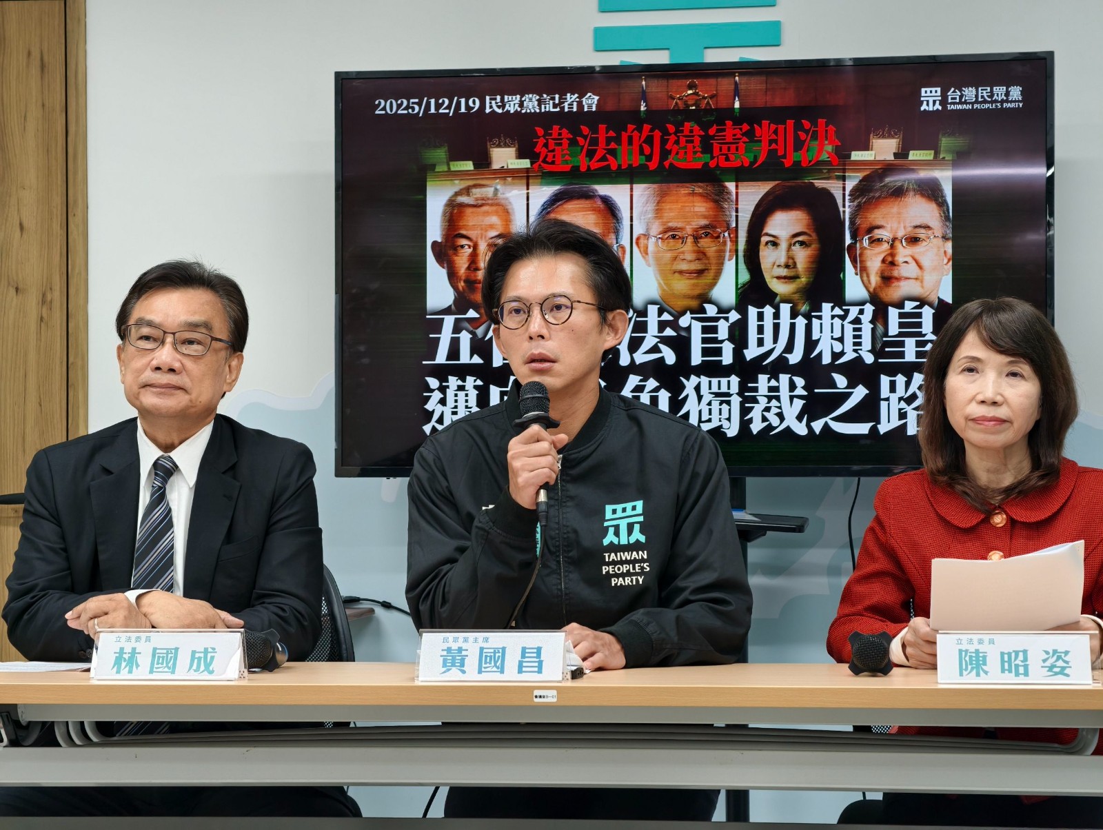 面對憲法法庭宣告《憲訴法》修正案違憲,民眾黨批評大法官協助賴清德總統稱帝丟光台灣臉。陳祖傑攝
