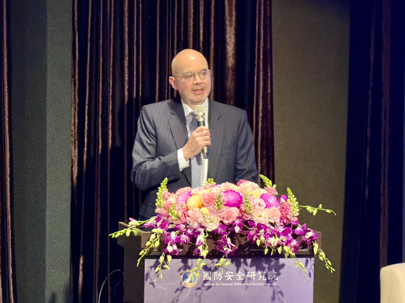 美國在台協會(AIT)處長谷立言2026.1.22出席國防安全研究院舉辦的「強化國防投資與國家整體發展」座談會,發表專題演講。郭宏章攝