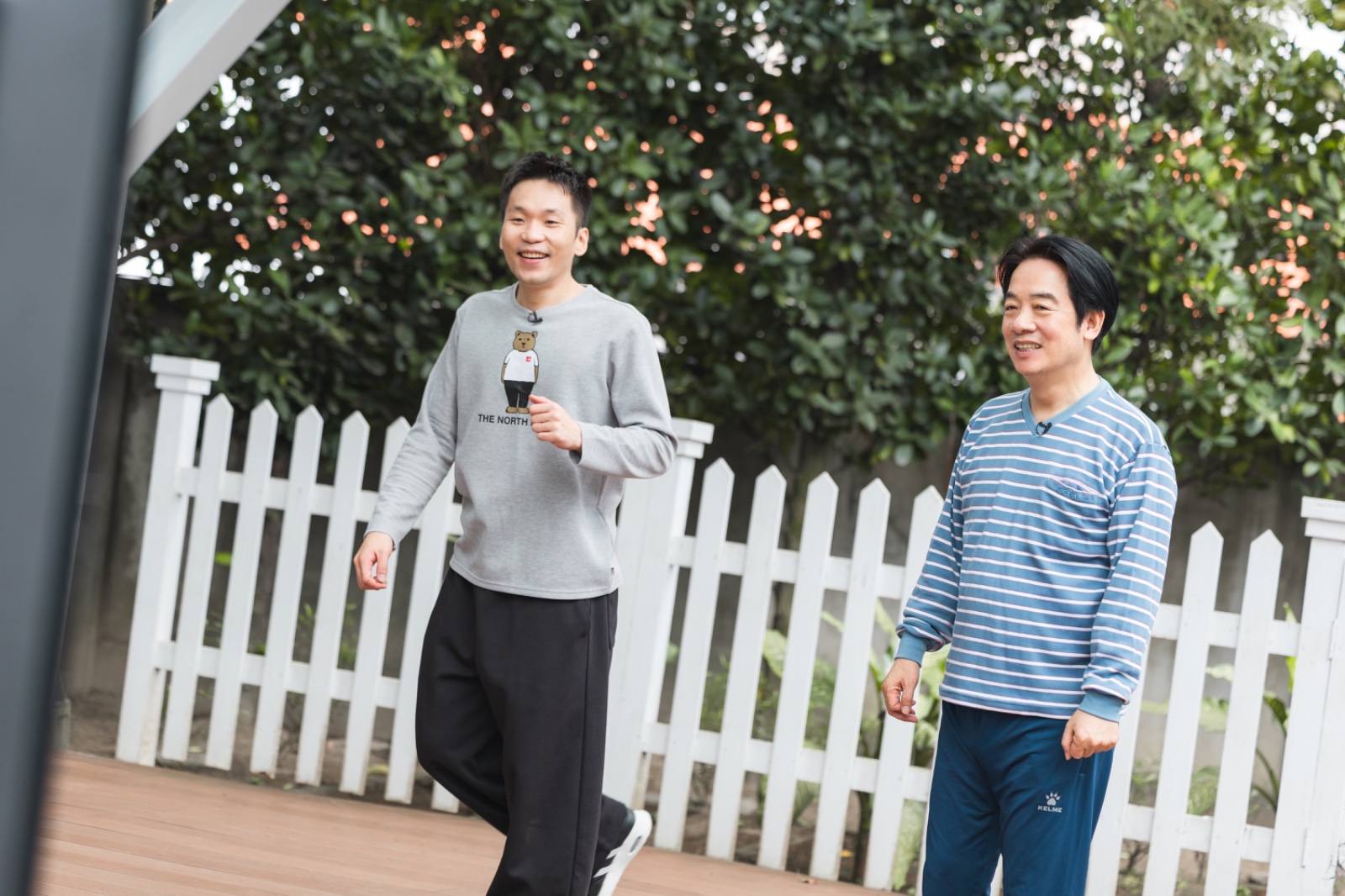 賴清德表示,過年期間,大家應該吃很多東西,因此邀請李洋教大家做運動。李洋則說,透過健康操,大家可以在日常居家狀況下進行,保持運動的好習慣,對身體有好處,邀請大家與他一起「每日三十分鐘」,一起運動吧。