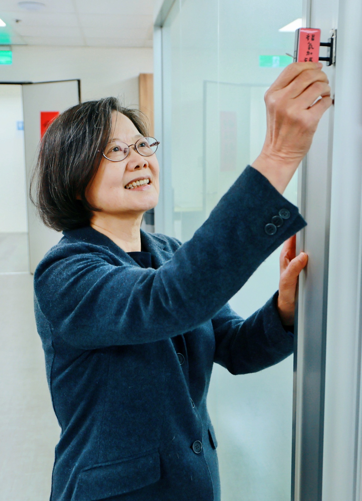 蔡英文也在辦公室內一一掛上福氣加碼的小燈箱,祝福國人「新的一年,福氣加碼!新年快樂!」