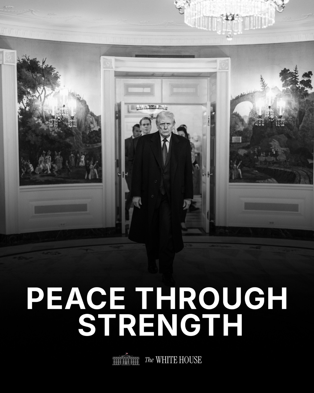 在美國白宮於社群發布總統川普照片配上PEACE THROUGH STRENGTH的文字之後,美國在台協會AIT同樣也以中文「以實力求和平」配上川普照片,並強調「這是唯一正途」(The only way)。取自臉書FB