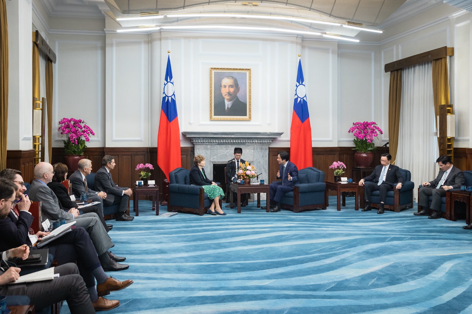 夏欣致詞表示,非常開心今天有機會能到總統府與賴總統會面,也非常謝謝總統邀請,此行來自美國參議員跨黨派黨團,成員來自不同委員會,包括外交關係委員會、財務委員會及參議員軍事委員會等,也非常謝謝谷處長蒞臨。
