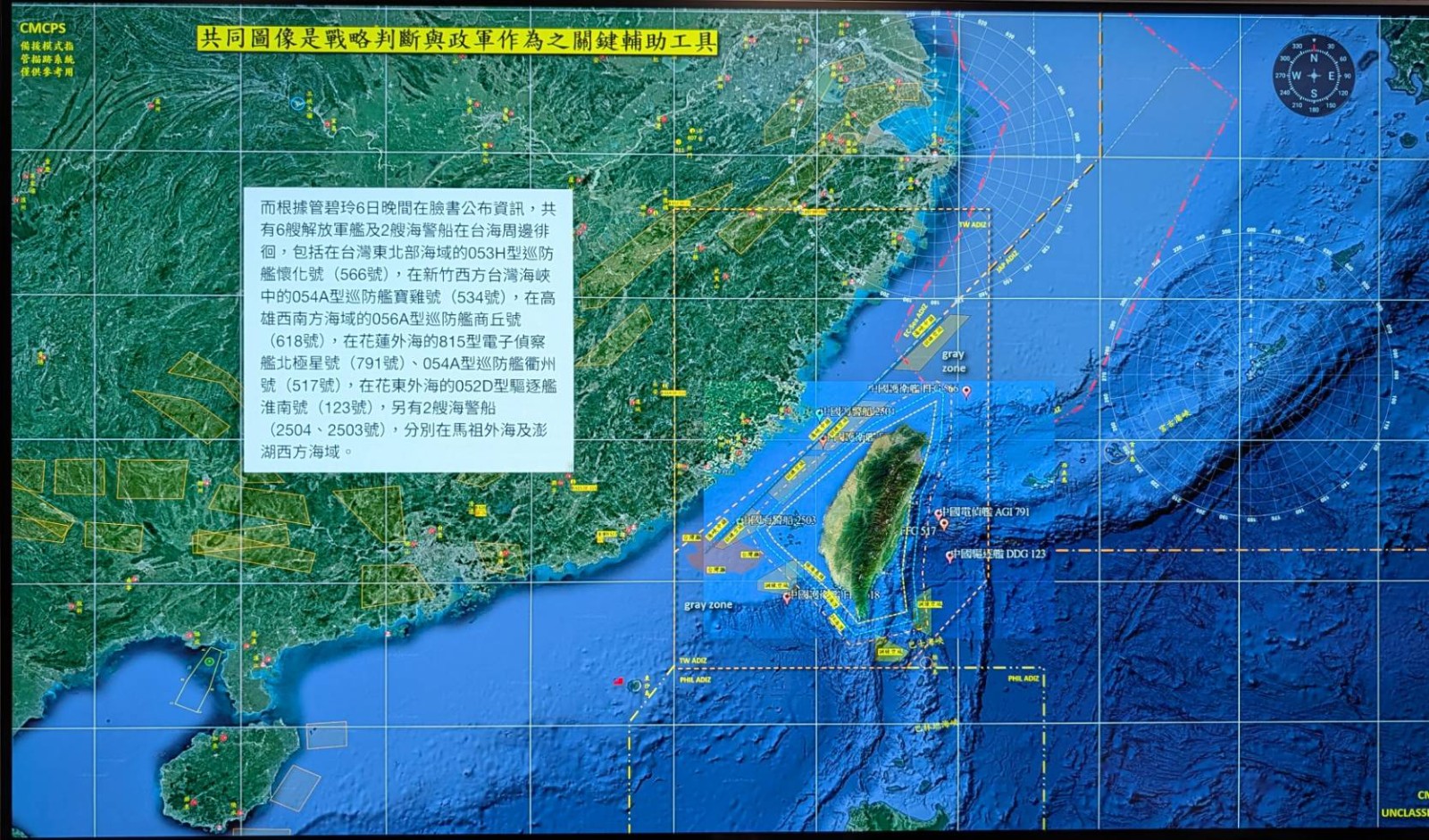 國民黨立委陳永康2024.4.8質詢時以海委會主委管碧玲公布的共艦、中國海警船在台海周邊態勢圖為例指出,共同圖像是戰略判斷與政軍作為之關鍵輔助工具。陳永康國會辦公室提供