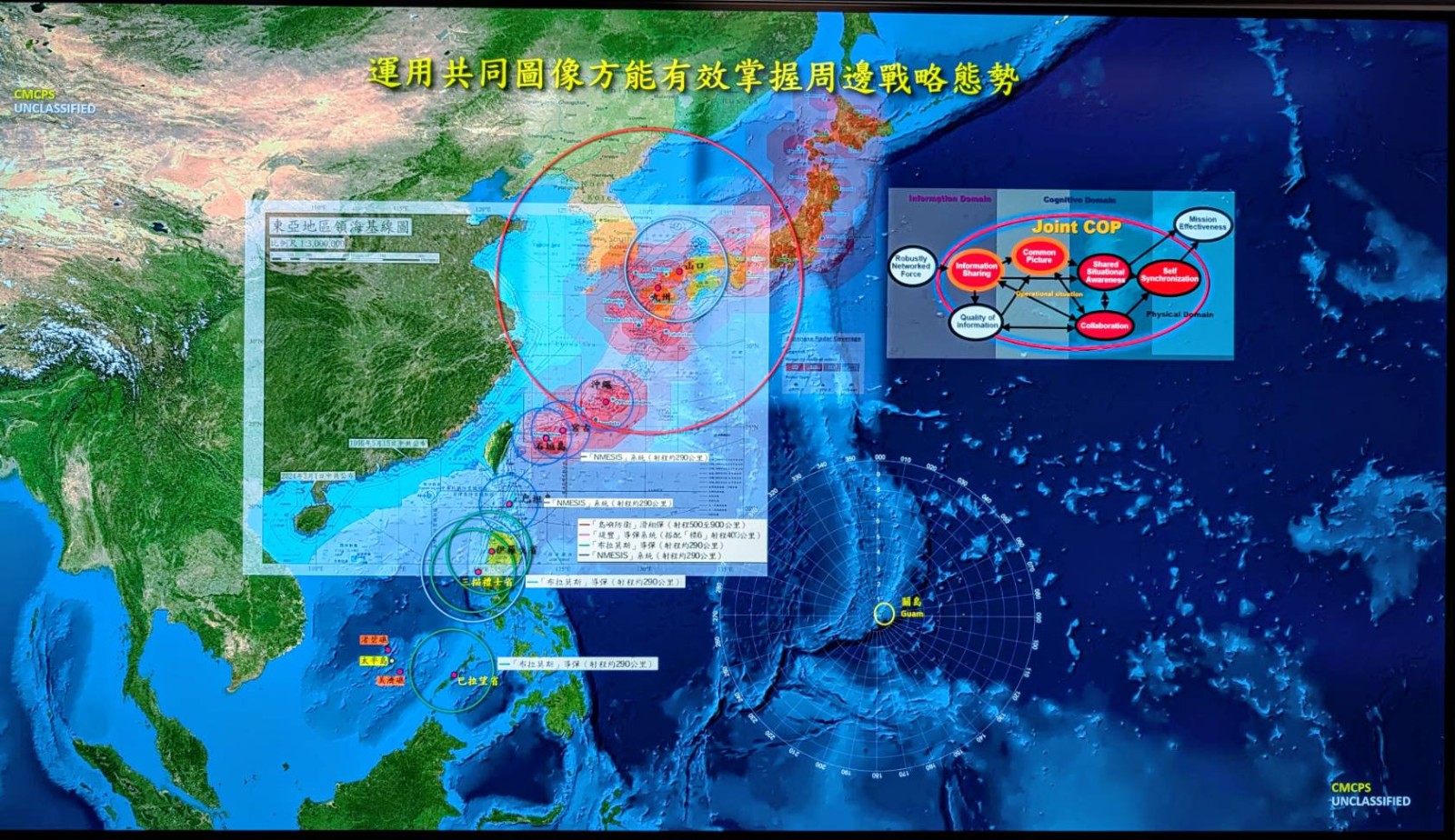 由於蔡明彥在今天的業務報告中,提到最近美國、日本以及菲律賓都在強化對東海南海整個的監控。陳永康也提供自己的資料與不同的資訊,將國安局簡報中的菲律賓、日本部署的武器裝備、Sensor(包括雷達等)涵蓋範圍也做了套疊,將套疊、以GIS校正後的成果展示給蔡明彥,陳永康指出「你就可以看到一個大範圍的圖、共同圖像。」請國安局參考。
