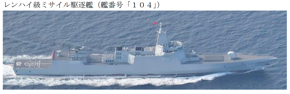 日本自衛隊追蹤拍攝的中國「無錫號」飛彈驅逐艦資料照。翻攝日本防衛省統合幕僚監網站