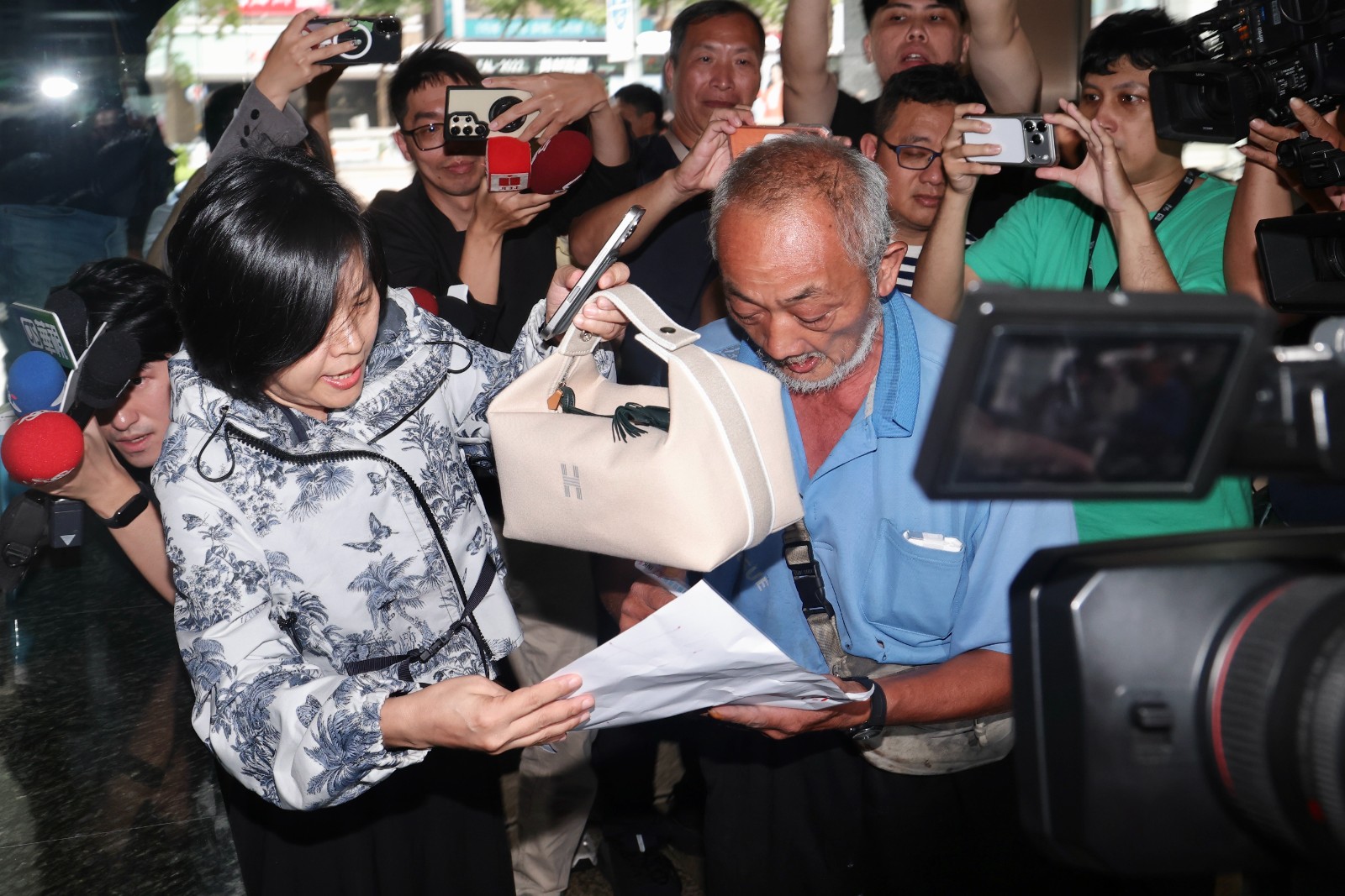 李貞秀到民眾黨中評會時遇支持民眾。李政龍攝