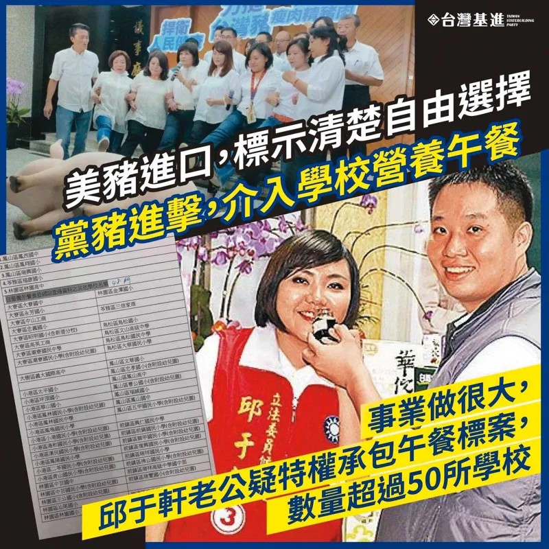 邱于軒與老公張簡正偉過去就曾遭控未利益迴避,標下多個高雄市中小學營養午餐標案,遭監院重罰。翻攝Wecare高雄臉書