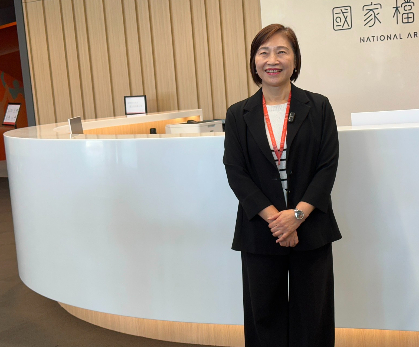 林秋燕並指出,館中公共藝術「以霧為景」與「以史為鏡」由藝術家許宗傑打造。她說明,「以霧為景」位於入館前的綠林坡道上,運用白色不鏽鋼交織線條,模擬林口台地常見的霧氣,為自然與建築之間提供一個柔性轉換,讓民眾可以沉澱心境準備入館;2樓往3樓的螺旋梯上則設置「以史為鏡」,使用1705片鏡面不鏽鋼,構築直徑達6公尺的巨型立體圓鏡,鏡面背面印製過往36個主題檔案特展的精選檔案,象徵從歷史中照見現在與未來,也讓民眾在穿越作品時感受檔案典藏的意義與價值。