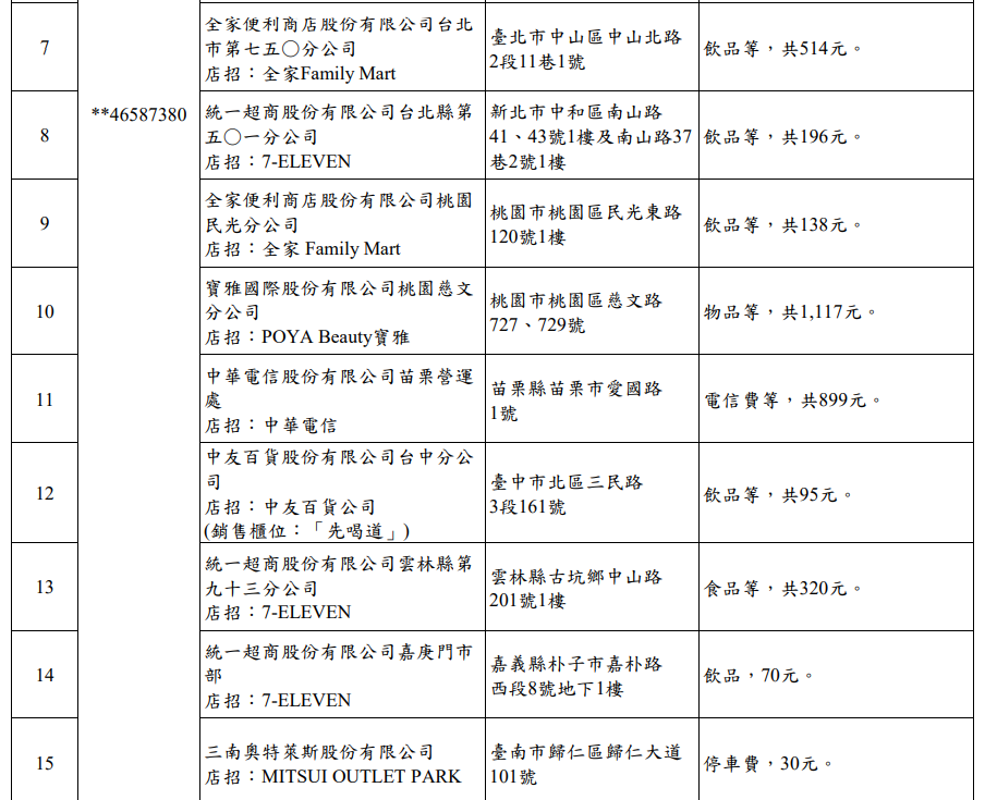 另外,從中獎消費清單中不乏飲品消費;有民眾在台南市新市區華興街一沐日花95元買蕎麥鮮奶茶也中千萬元。