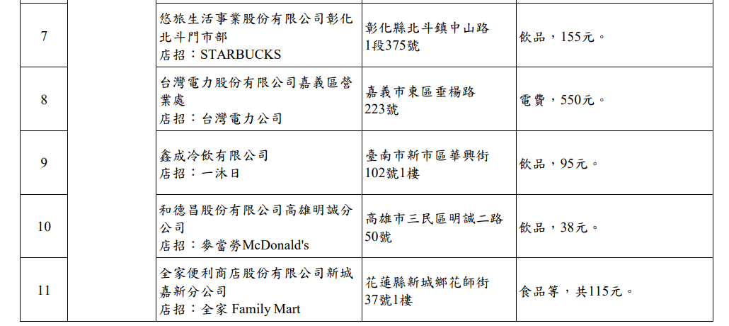 根據財政部提供的中獎清冊,本次11張千萬元特別獎中獎名單中,消費金額最高的是台灣電力公司嘉義區處,有民眾繳550元電費就中獎千萬元。