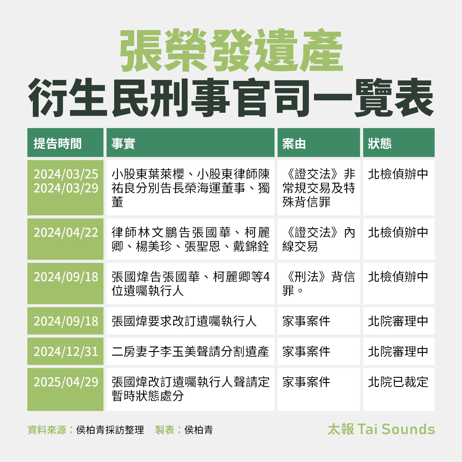 張榮發遺產衍生民刑事官司一覽表。太報整理