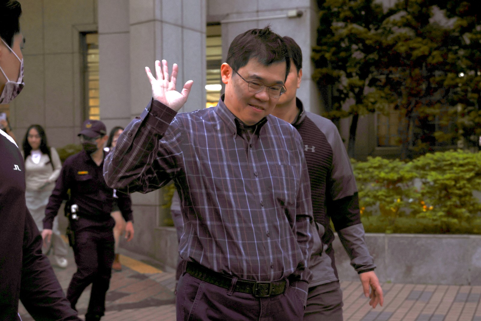 張國煒離開法院時向媒體揮手,稱開庭「很順利」。廖瑞祥攝