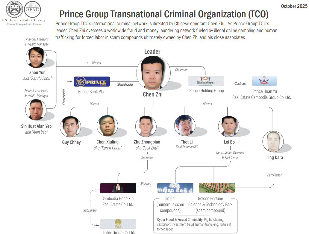 美國和英國週二(10/14)聯手制裁總部位於柬埔寨金邊的「太子集團」,指控其為跨國詐騙集團。美國財政部將與該集團有關的146人全部列入制裁名單,其中包括8間在台灣登記的實體和3名台灣人。美國司法部同時查扣太子集團總裁所持有、價值142億美元的比特幣。
