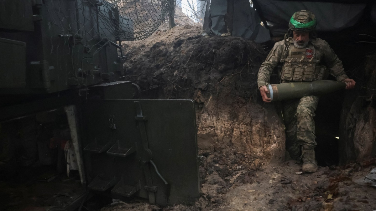 2025年11月21日,烏克蘭頓內茨克州波克羅夫斯克( Pokrovsk,舊稱紅軍城)附近,烏軍士兵準備填裝一枚M109A5自行榴彈砲砲彈。路透社