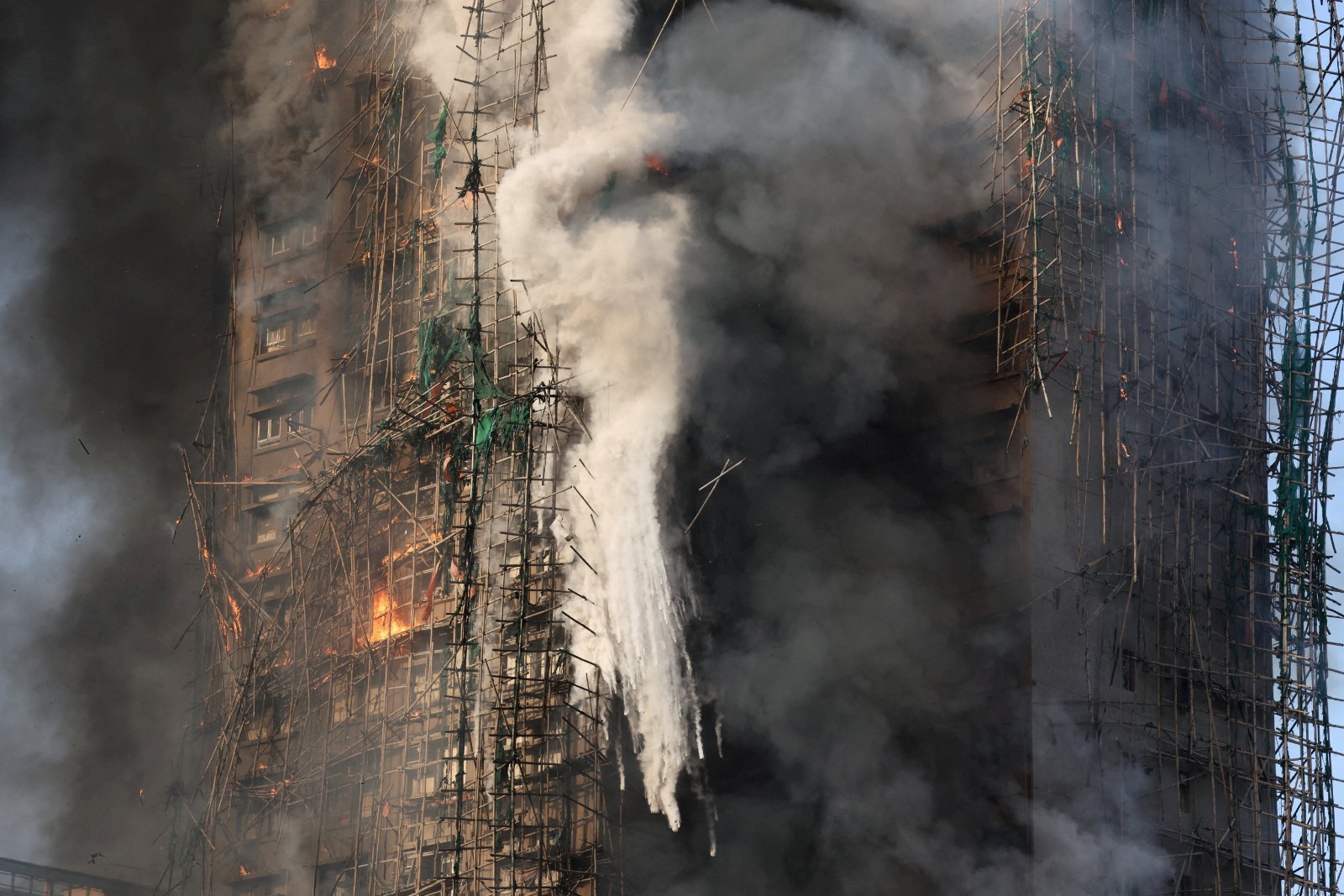 2025年11月27日清晨,香港大埔宏福苑火勢仍未完全撲滅。路透社