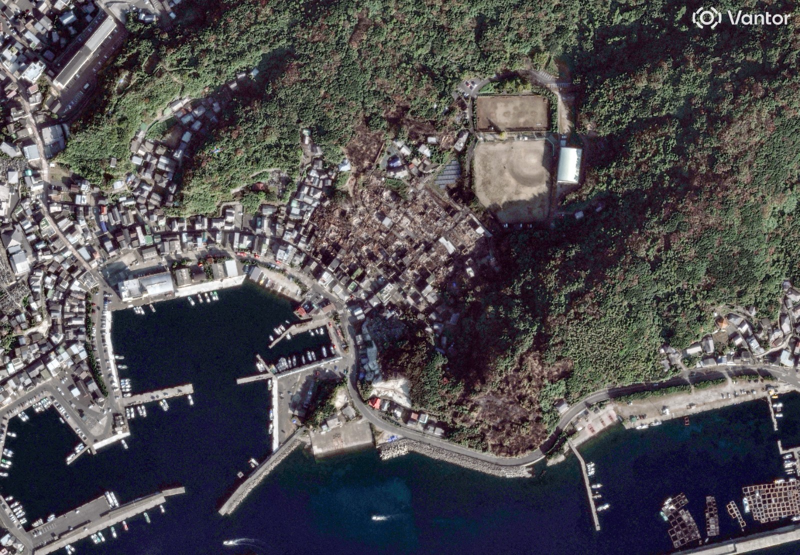 日本九州大分縣大分市18日發生大規模火災,燒了10天後,當局28日宣布,已完全撲滅半島住宅區的火勢。這場大火造成1人死亡,182棟住宅被焚毀。