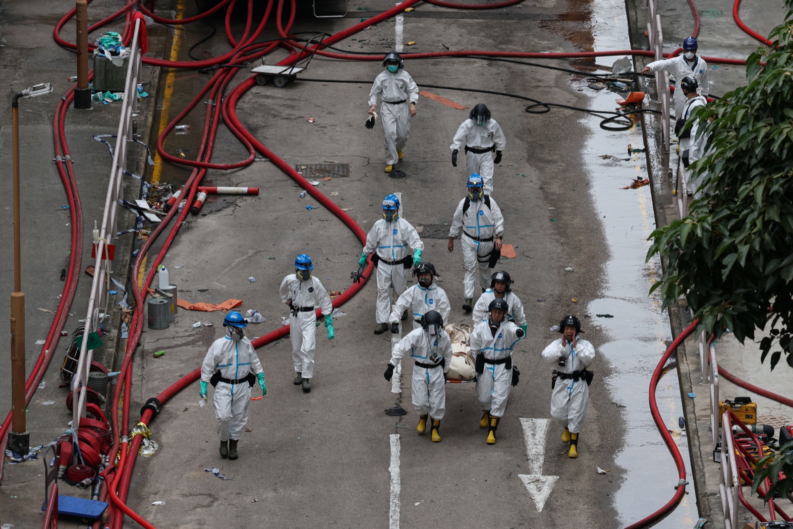 2025年11月30日,香港警方繼續搜索大埔「宏福苑」,陸續抬出數具遺體。路透社