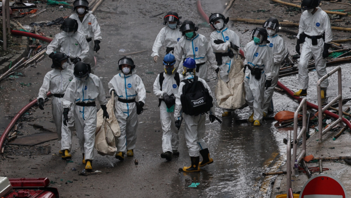 香港大埔高樓住宅社區「宏福苑」上週三(11/26)大火,警方災難遇害辨認組人員搜索大樓,今天(11/30)陸續抬出數具遺體。港警下午5時記者會上宣布,將死亡人數從128人增至146人。
