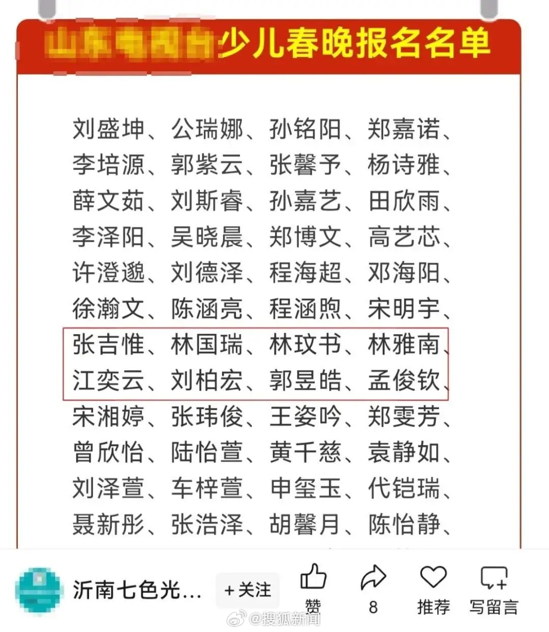 網友隨後發現,在全中國各地的文件公告、比賽獲獎名單、少兒春晚報名名單、研究計畫人員名單、行政處罰公示、考試通過名單、專利發明人、學術期刊編委等不同場景,都能看到這五個名字。