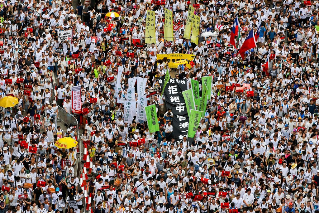 2019年6月9日,數以萬計港人走上街頭反對修訂《逃犯條例》,揭開反送中運動序幕。美聯社